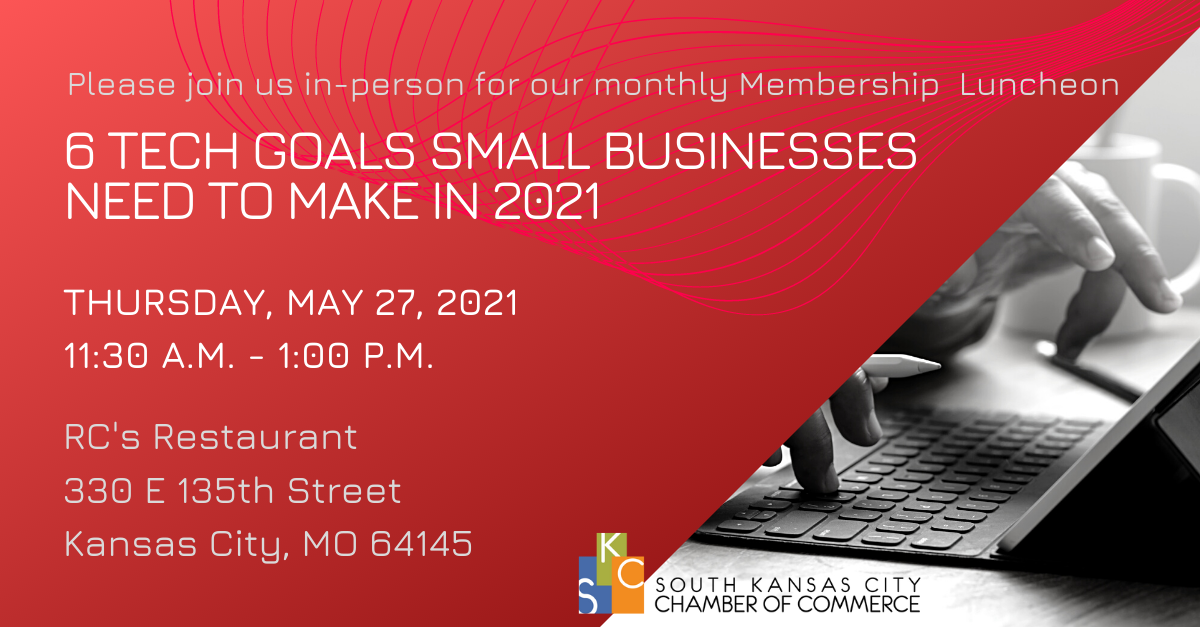 Please join us in-person for our monthly luncheon as we hear from Burton Kelso with Integral as he talks about 6 Tech Goals Small Businesses Need to Make in 2021.