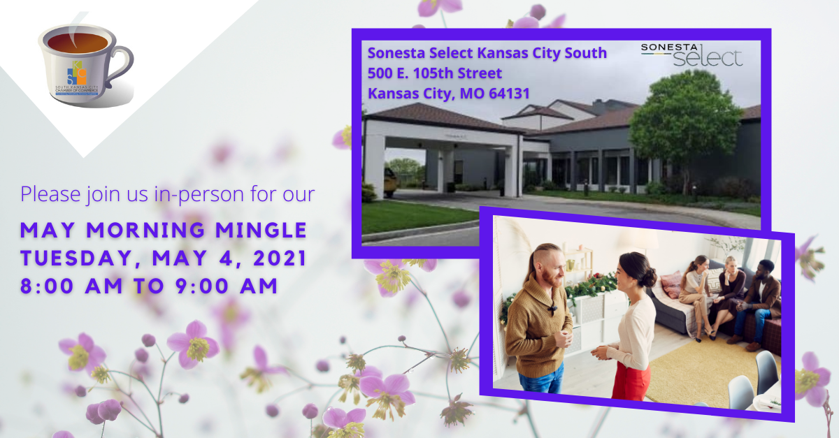 Join us for our May Morning Mingle at Sonesta Select Kansas City South. We will observe all recommended social distancing guidelines. Masks and hand sanitizer will be available.